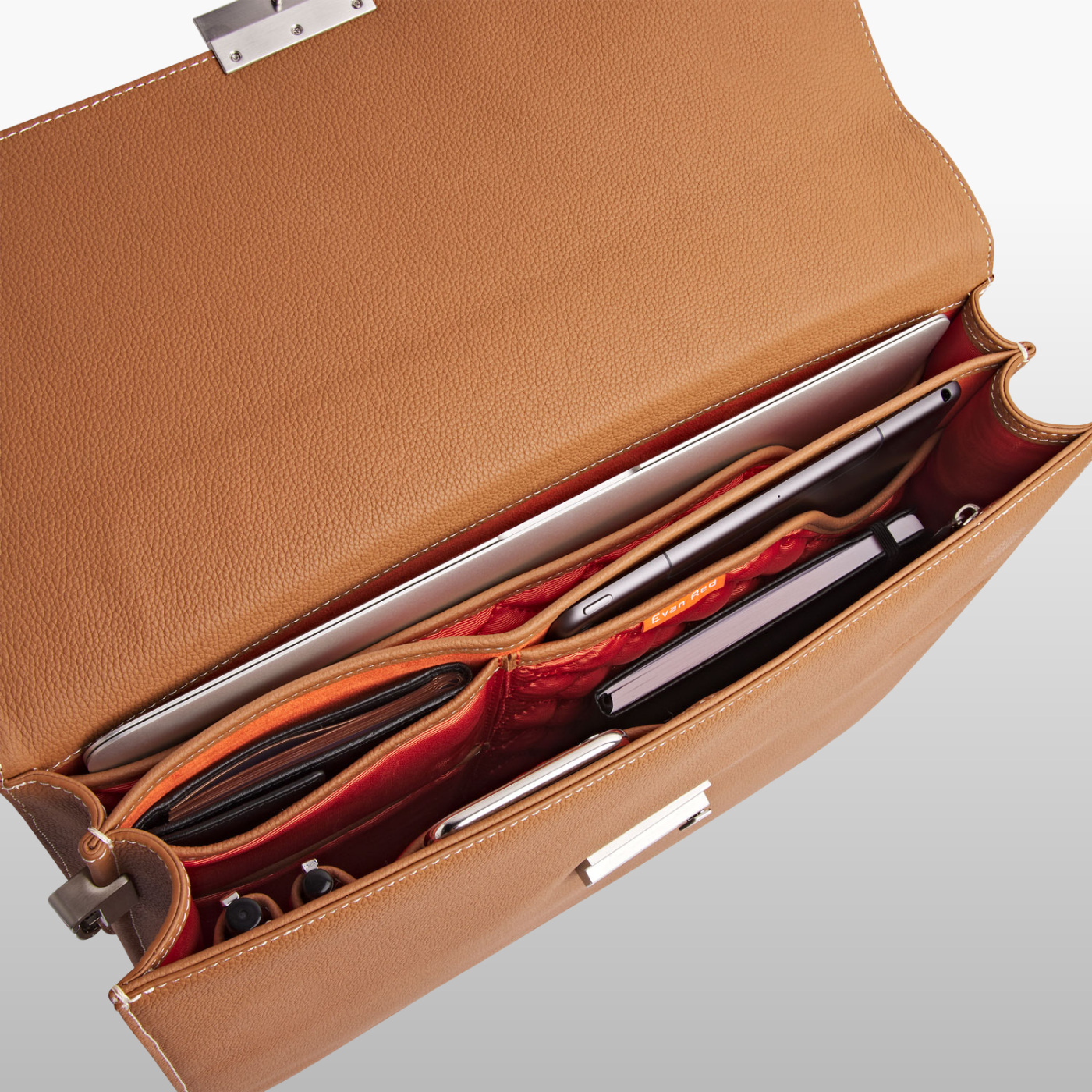 The Amsterdam briefcase features a dual-zip luggage sleeve, allowing you to effortlessly secure it to your trolley